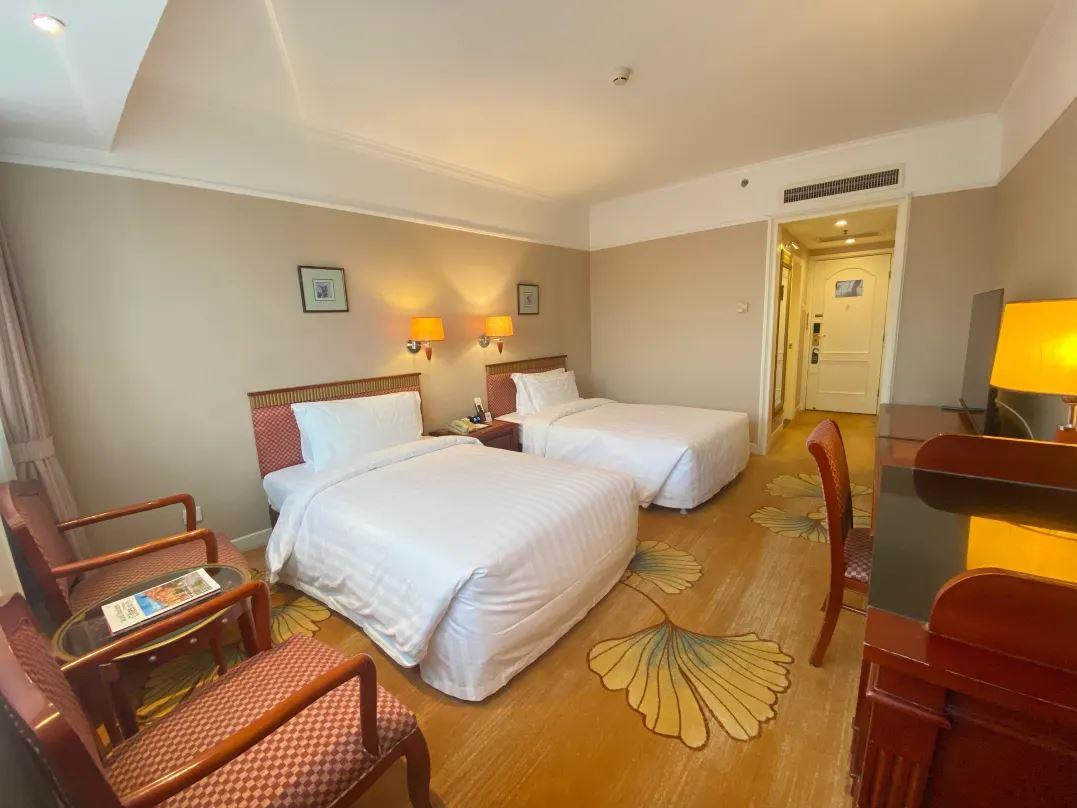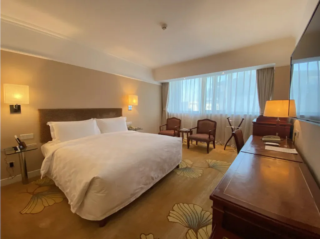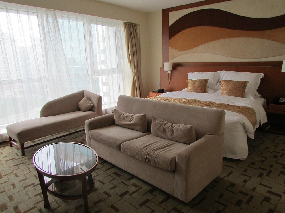 В отеле Jianguo garden есть очень впечатляющий вестибюль, но не обманывайте себя. Мы остались в номере 4035, который выходит на кондиционеры. Комната была очень устарела, особенно в туалете. Ковры были грязными, и в комнате пахло несвежим сигаретным дымом. У вас есть чай и кофе в номере и цифровой сейф. Кондиционер был шумным и, казалось, не работал. У нас была проблема с туалетом, которая потребовала две жалобы и 24 часа, чтобы исправить. Хотя завтрак был очень хорошим с обширным выбором и сильным Wi-Fi без пропусков, я бы предпочел остаться где-нибудь лучше.