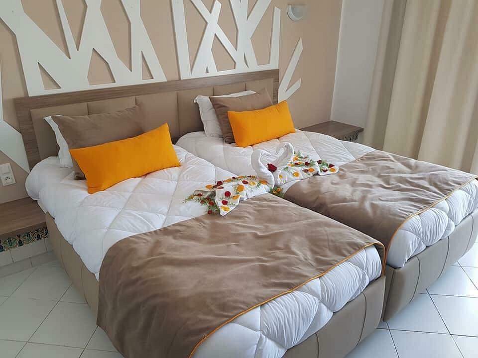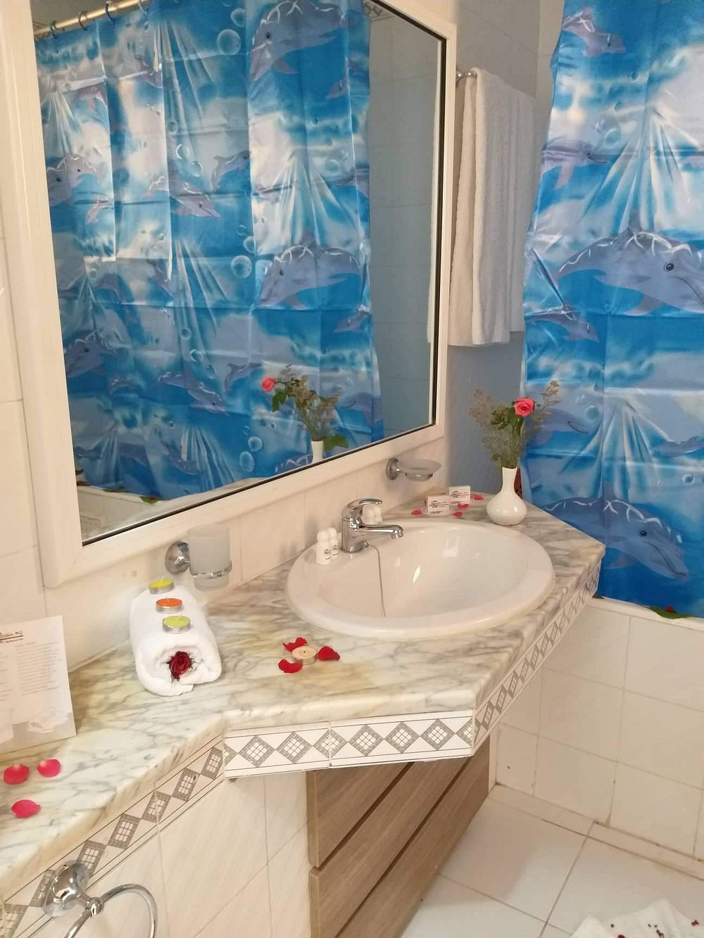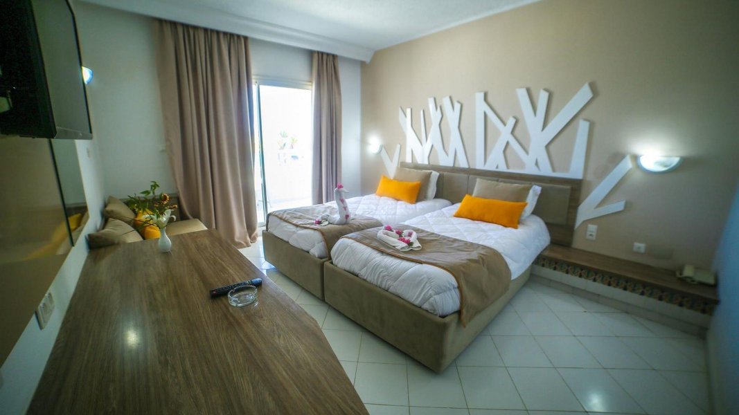 Сам отель большой, территория просто огромная. Большая часть персонала очень дружелюбны и приветливы! На этом плюсы заканчиваются. Бассейн с горками - один сплошной соленый ад. Причем вода просто соленая, даже не морская. Когда катаешься на горках, вода попадает всюду, а это СОЛЬ, разъедает все заживо. Половина территории закрыта и в полуразрушенном состоянии, но узнать об этом можно лишь на месте. Пляж 50 метров от силы в длину, но это не беда. Там почти не бывает людей, потому что море в этой части очень грязное. Из-за постоянного ветра, бесконечные водоросли и медузы. Местные говорят, что так почти всегда, от месяца не сильно зависит. В отличии от Сусса, где идеальные пляжи с идеальной водой, к примеру. Номера старые, санузлы тем более. В номерах запросто вас может ожидать ящерица или еще какая живность. Это никого не удивляет. Принесут дихлофос и обольют номер. А как в нем дальше находиться, тоже не особо кому интересно. Питание не особо разнообразное и много острого. Фрукты очень ограничены в выборе. Мороженое только в их магазине. Это для сравнения с тем же Суссом (причем отелем 3*), а здесь 4*. На полдник из еды бургеры и странные пиццы. На этом всё. Ребенку вообще нечем было перекусывать. Интернет только на ресепшене и то очень плохой. Можно половину вечера не подключиться, про скорость вообще молчу. Еще раз отмечу, что при всех косяках почти весь персонал максимально отзывчив и дружелюбен. За исключением единственного человека - спасатель на пляже. Который зачем-то пытался многократно позвать куда-то ехать гулять, но мне с ребенком это было совершенно не интересно. После моего отъезда он написал миллион хамства в мои соц сети и потребовал, чтобы я никогда не возвращалась в их отель. Вот что творит с мальчиками обида.